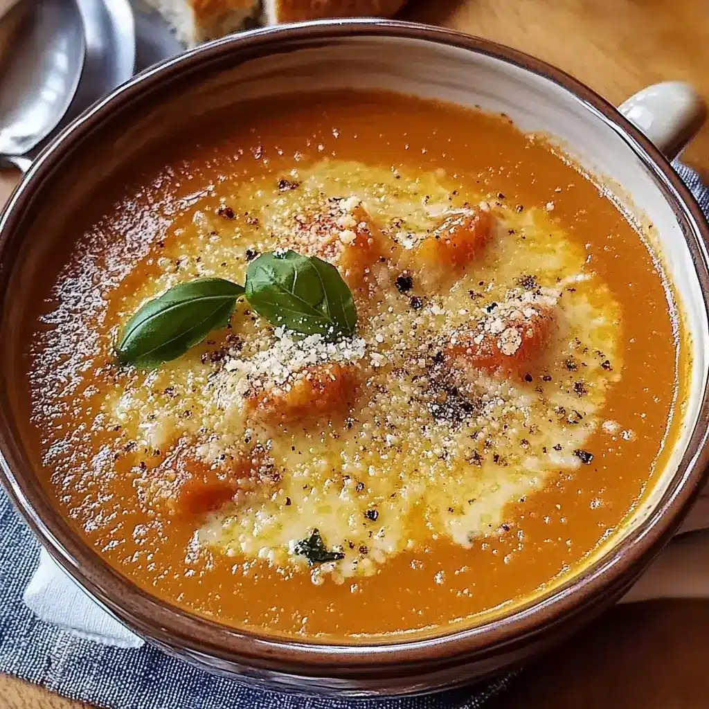Creamy Roasted Garlic Tomato Soup with Parmesan recipe