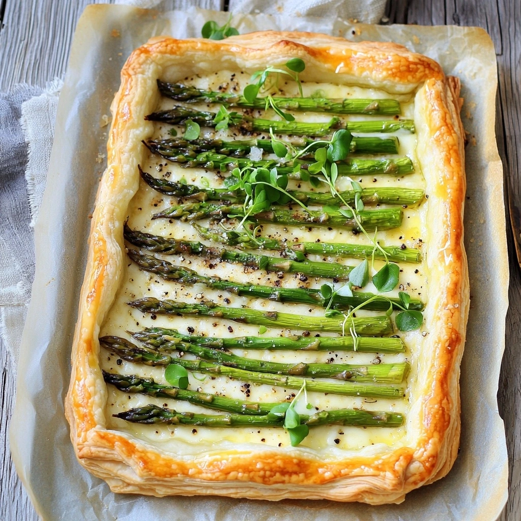 Fresh asparagus is another star of this tart. Its vibrant green color and crisp texture not only offer a visually appealing contrast to the cheese and pastry but also bring a fresh, earthy flavor that brightens the entire dish. Asparagus is also a nutritional powerhouse, packed with vitamins, minerals, and antioxidants, making this tart a healthy option for those who are health-conscious. The tart can be enhanced further with the addition of other seasonal vegetables—such as cherry tomatoes, spinach, or leeks—allowing you to tailor it to your taste preferences or whatever you have on hand.