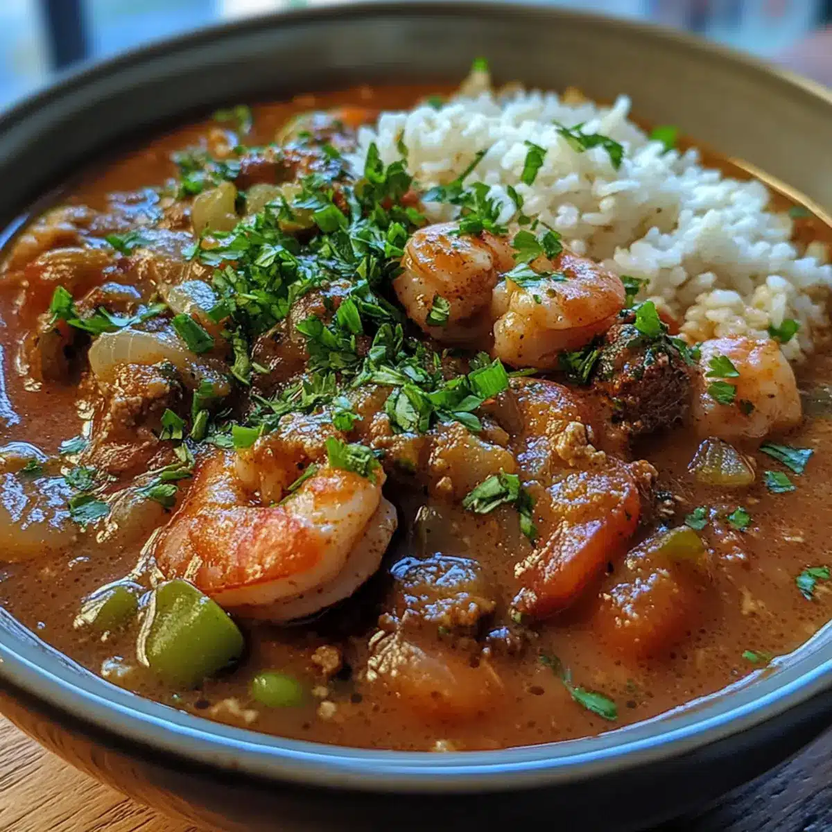 - Stir in peeled shrimp, cooking 5–7 minutes until shrimp turn pink and firm, integrating fresh seafood sweetness into the rich gumbo.