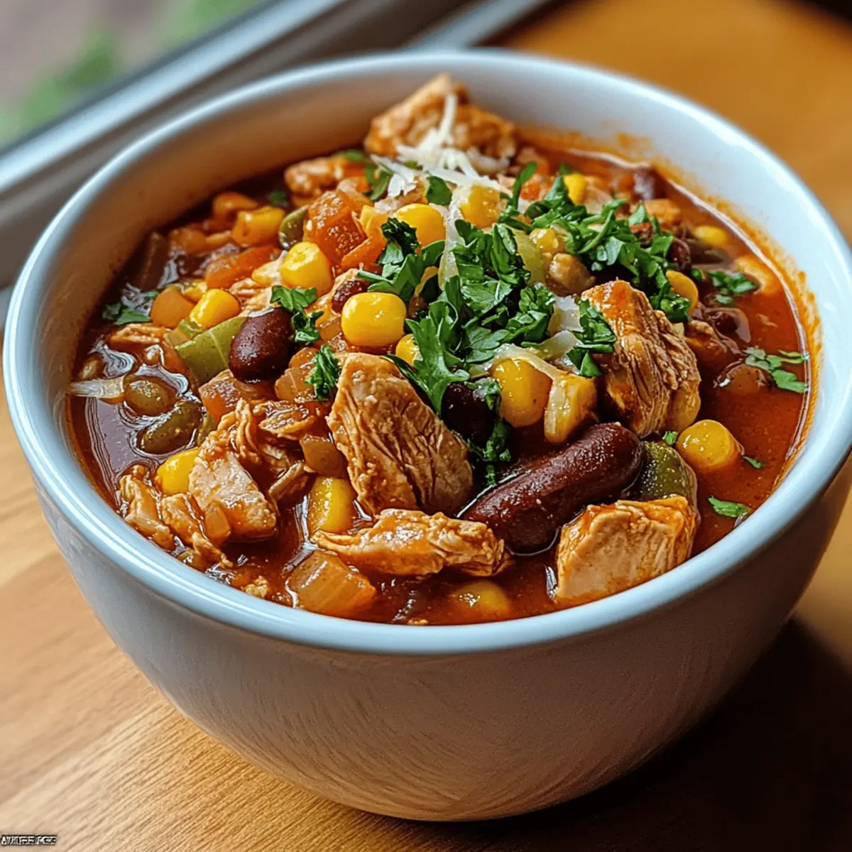 - Garnish and serve: Ladle chili into warm bowls, topping with shredded cheese and fresh cilantro.