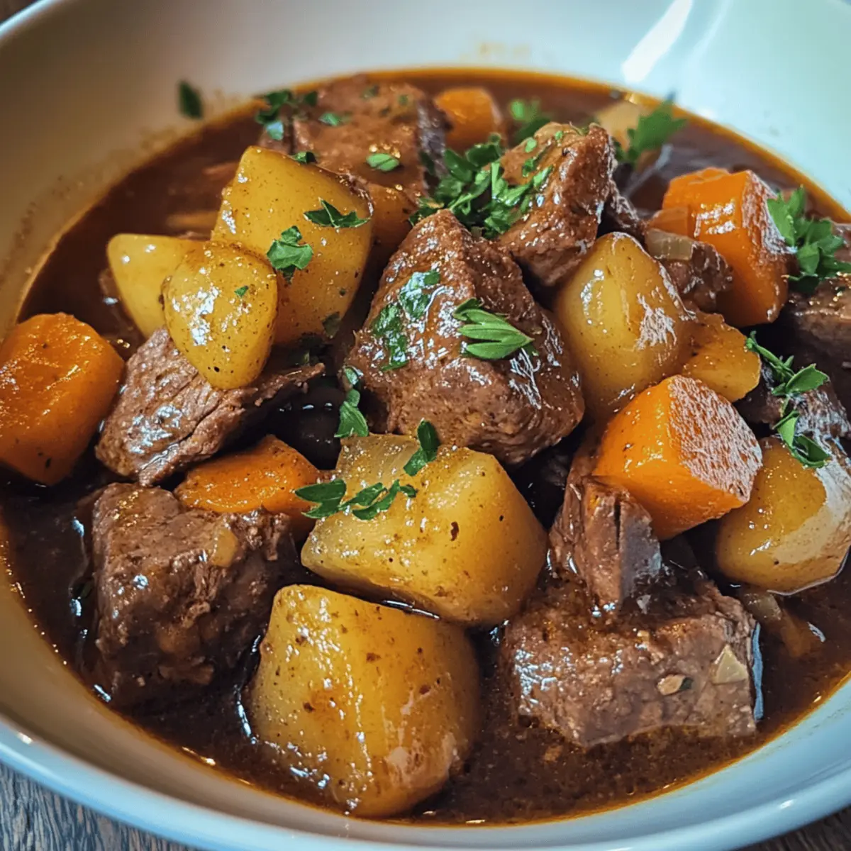 Comfort food, elevated: This stew blends tender beef with hearty root vegetables for a cozy, satisfying meal. Simple preparation: Minimal ingredients and easy steps make it perfect for home cooks of any skill. Rich, layered flavors: Slow cooking deepens the savory broth, infusing every bite. Versatile and nourishing: Ideal for family dinners or meal prep, delivering warmth and nutrition. Crowd-pleaser: A timeless classic that pleases both comfort seekers and food lovers alike.