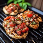 - Top with Bruschetta: Spoon a generous amount of the prepared bruschetta topping over each grilled chicken breast.