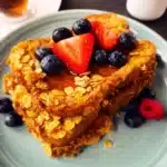 If there is one recipe that perfectly captures the pure, unfiltered joy of a Saturday morning from my childhood, it is this one. The first time I had the wild idea to combine two breakfast legends—fluffy, custardy French toast and the iconic, sugary crunch of Cap’n Crunch cereal—I felt like a mad scientist in the best possible way. The sound alone was intoxicating: the sizzle of the egg-soaked bread hitting the buttery pan, immediately followed by the crackle of the cereal crust as it formed a golden, sugary armor. When I served the first batch to my family, the reaction was immediate. First, a moment of stunned silence, then the audible crunch as they took their first bite, followed by wide-eyed looks of absolute delight. It was a home run. This isn’t just French toast; it’s an experience. It’s the soft, pillowy interior you love, protected by a shatteringly crisp, sweet coating that stays crunchy even after being doused in maple syrup. It is nostalgia on a plate, a breakfast that feels like a special occasion, and a guaranteed way to make anyone’s day start with a massive smile.