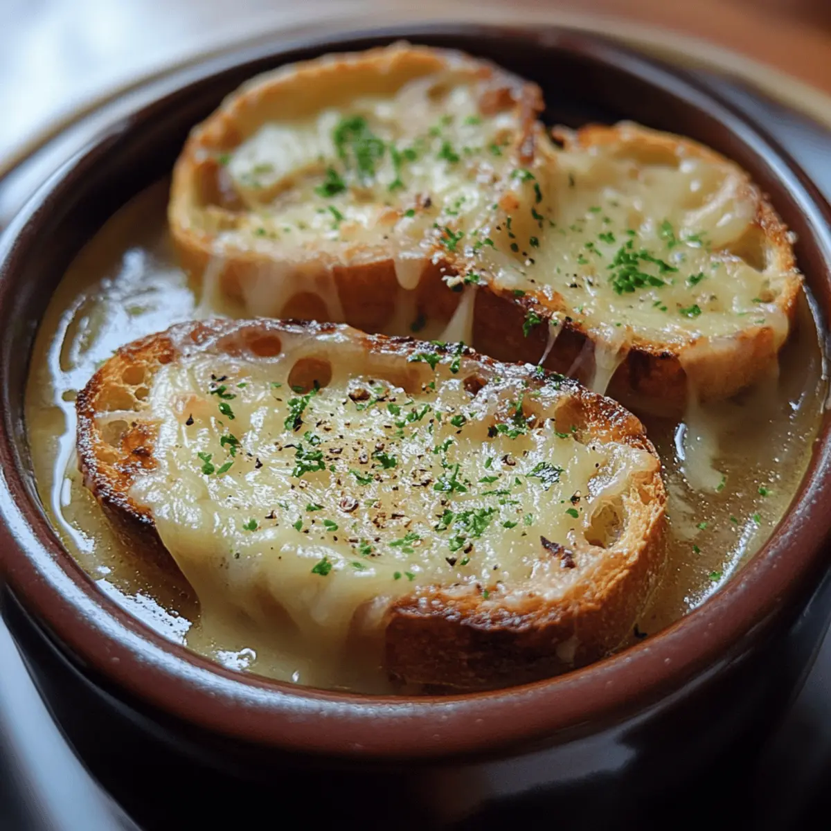 Irresistible Comfort: This soup wraps you in warmth with every spoonful, perfect for cozy evenings. Effortless Elegance: Simple steps create a dish that tastes like a Parisian masterpiece without the fuss. Deep, Rich Flavor: Caramelized onions and savory broth blend into an unforgettable taste experience. Melted Gruyère Bliss: The cheesy crostini adds a golden, gooey finish that’s pure indulgence. Versatile Appeal: Ideal for quiet dinners or impressing guests with classic French flair.