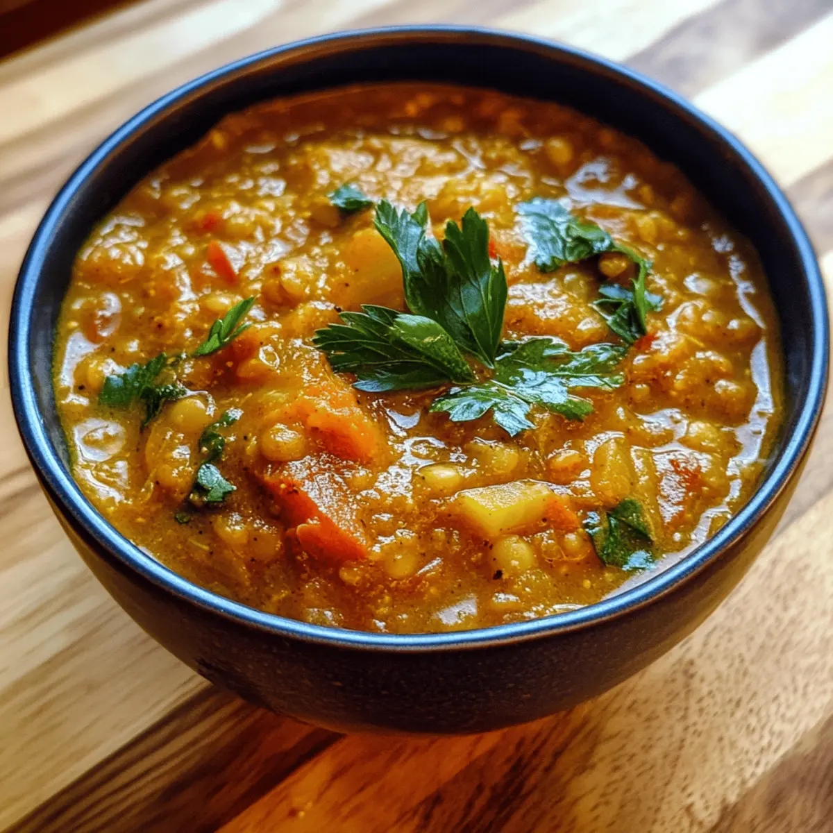 - Simmer Gently: Let the stew cook for 20–25 minutes, stirring occasionally until lentils are tender and the stew is creamy, with a vibrant reddish–orange hue.