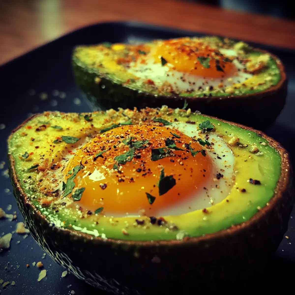- Crack the eggs: Carefully crack one large egg into each avocado half, keeping the yolk intact. Season lightly with salt and freshly ground black pepper.