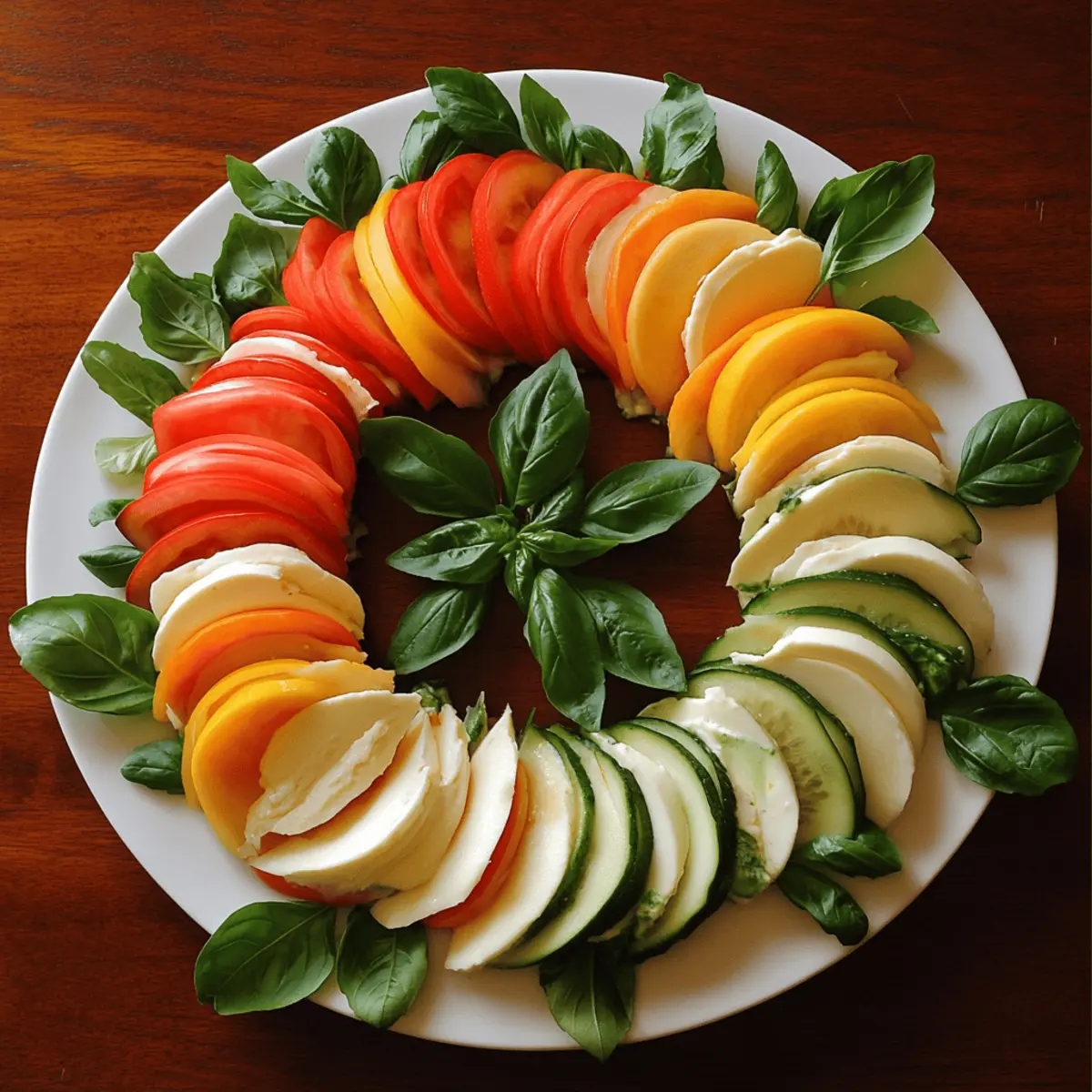 Vibrant Presentation: This wreath is a feast for the eyes with its colorful arrangement. Simple Assembly: Perfect for those who love ease without sacrificing style. Fresh Flavors: Juicy tomatoes, creamy mozzarella, and fragrant basil create an irresistible trio. Versatile Dish: Ideal as an appetizer or light meal that impresses everyone. Quick to Make: Ready in minutes, saving you precious time in the kitchen. Crowd-Pleaser: Guaranteed to wow guests with its festive charm and delicious taste.