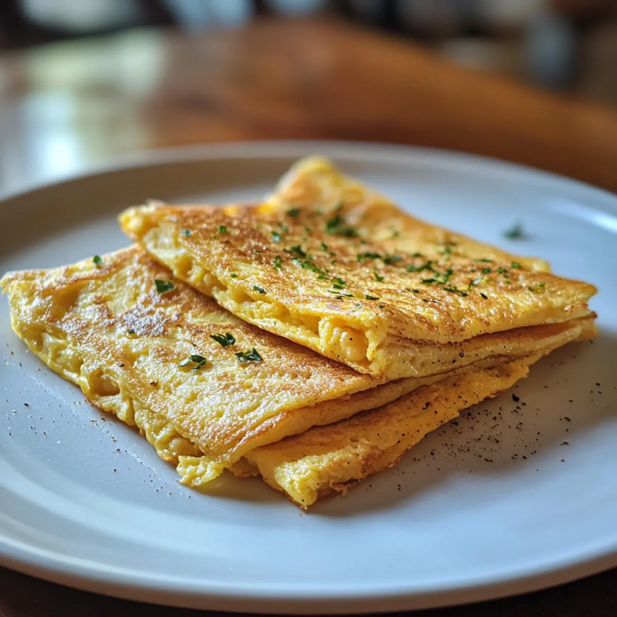 - Flip Carefully: Use a wide, flexible spatula to flip gently; flipping too soon or roughly can tear the omelet strips, losing that perfect presentation.