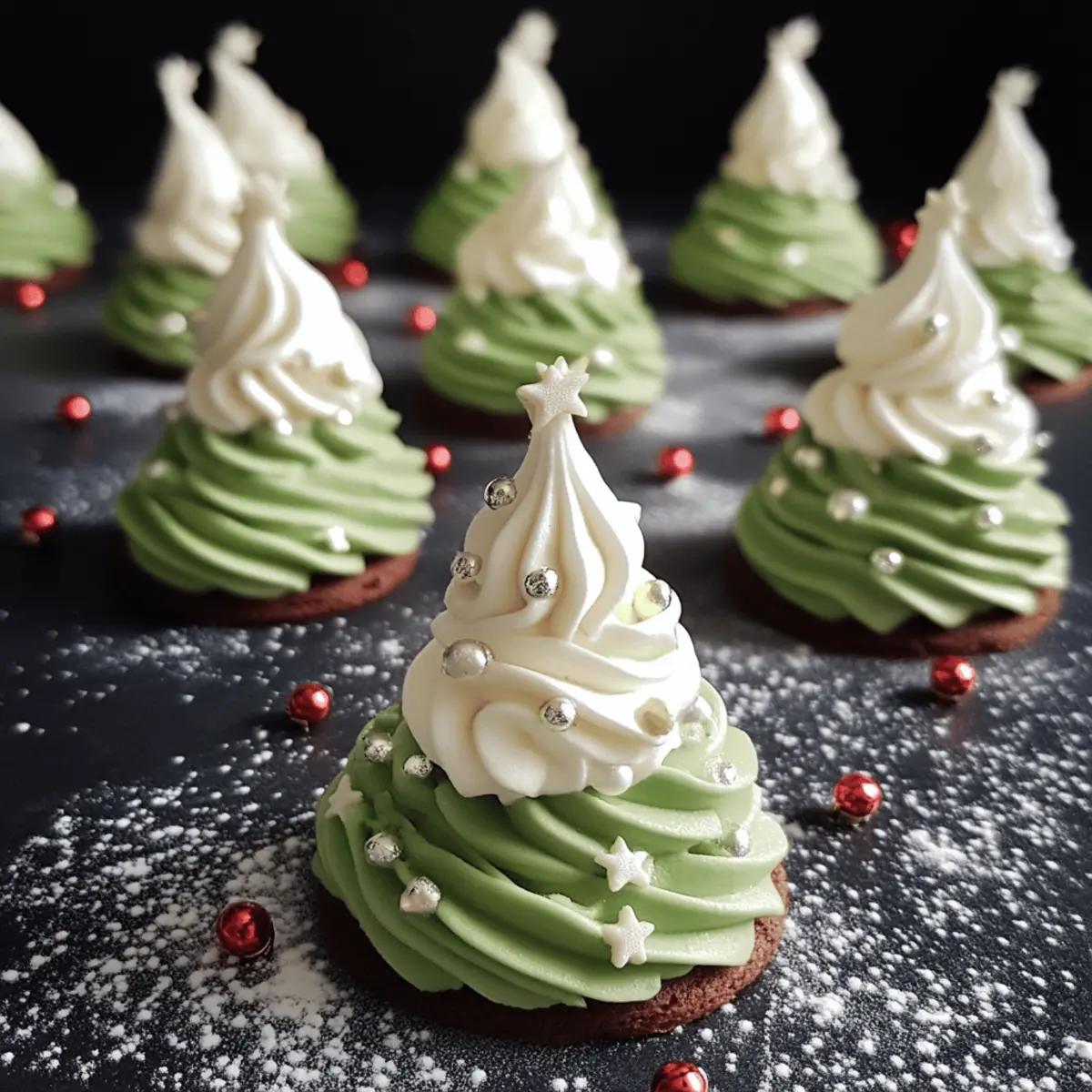 - Decorate Pre-Bake: Gently press edible pearls and festive sprinkles onto each piped tree before baking so they adhere as the meringues dry.