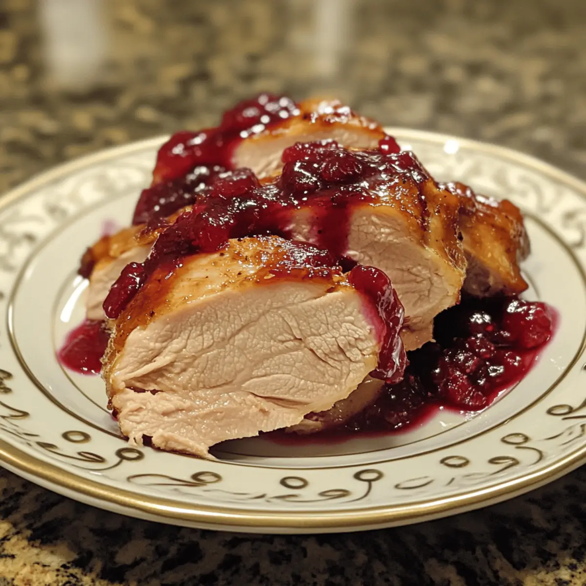 - Rest meat: Let the glazed turkey rest for 5 minutes before slicing. This ensures juicy, tender slices that hold their shape and showcase the vibrant cranberry topping.