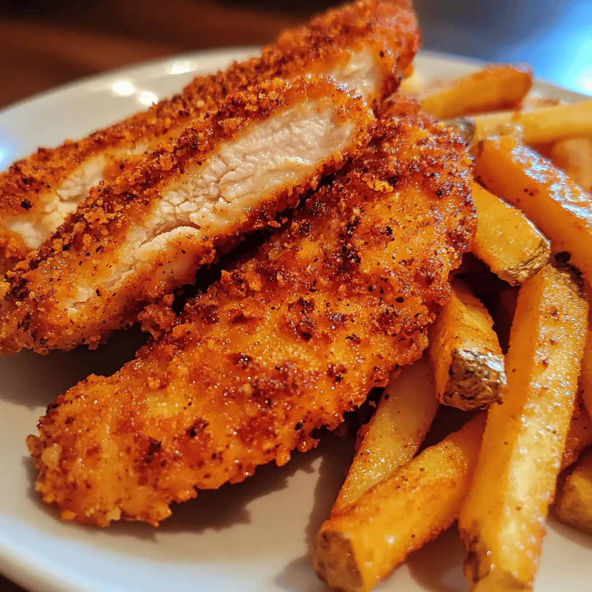 Crispy without the guilt: Enjoy that golden crunch without deep frying. Simple preparation: Just a few steps and common ingredients make this recipe a breeze. Family favorite: Perfectly seasoned tenders and fries loved by kids and adults alike. Time-saving: Ready in under 30 minutes, ideal for busy nights. Versatile and satisfying: Great as a hearty snack or a full meal, perfect for any occasion.