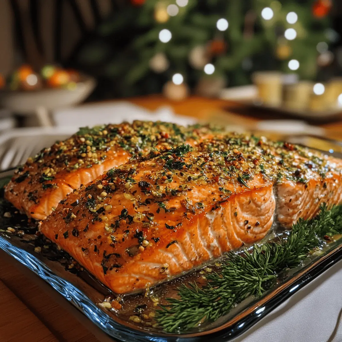 - Add Fresh Citrus: A squeeze of lemon just before serving brightens the rich herb-crusted salmon, enhancing its festive flavor.