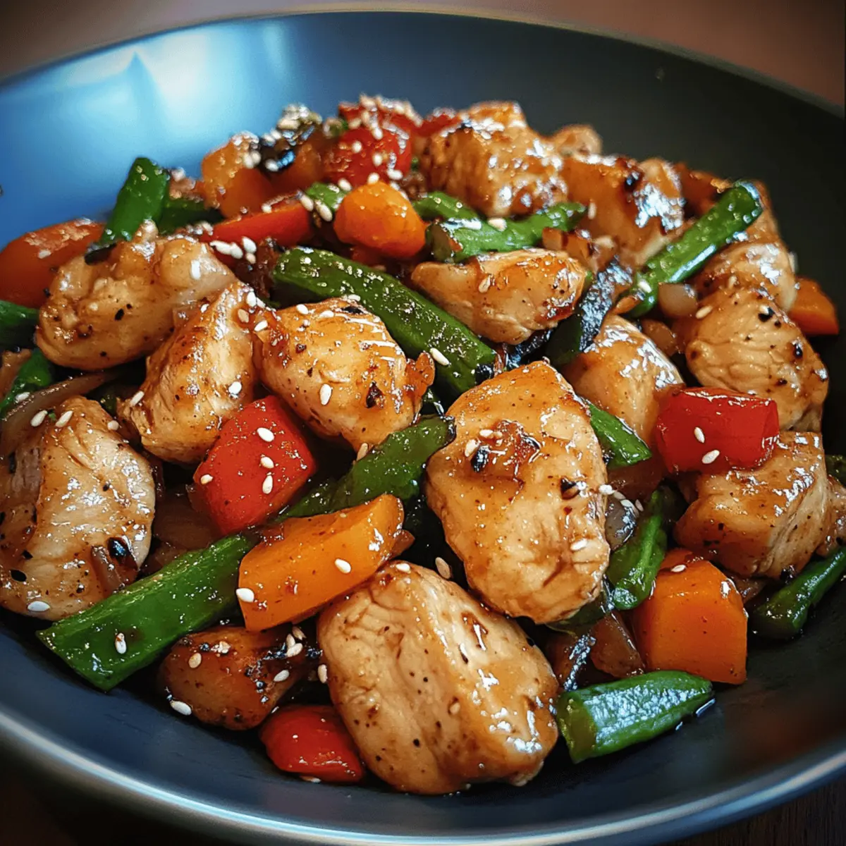 - Combine & Glaze: pour sauce over veggies, return chicken to skillet, toss 2 minutes until sauce thickens and coats everything in a glossy sheen.