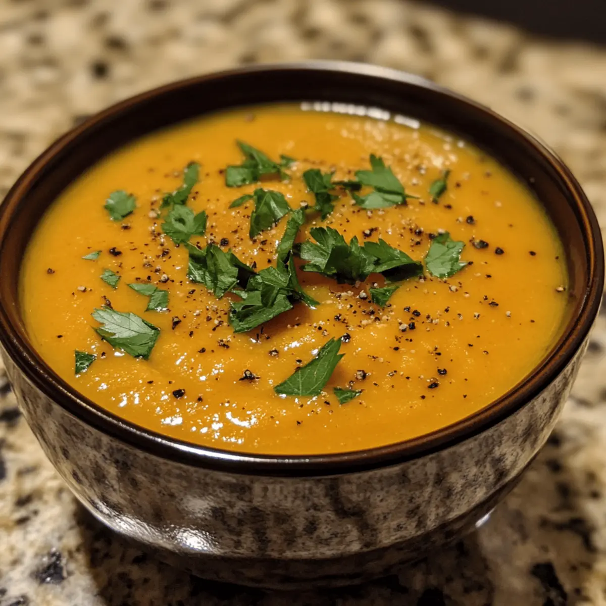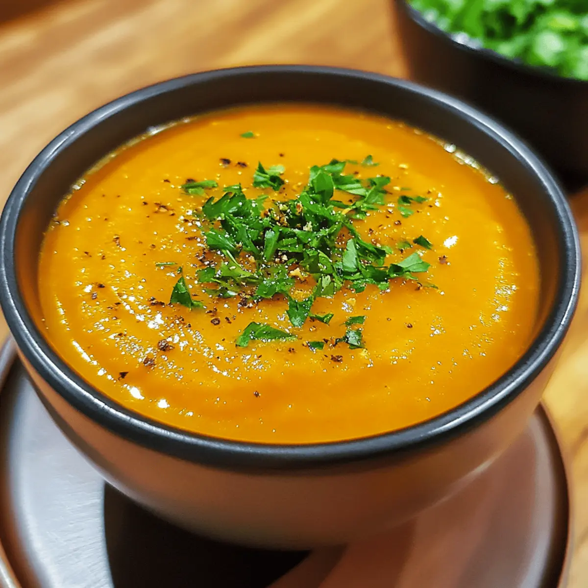 Herbal Twist: Stir in fresh herbs like cilantro or parsley just before serving to add a burst of freshness and color. The vibrant greens contrast snuggly with the warm orange soup, enhancing both flavor and presentation.