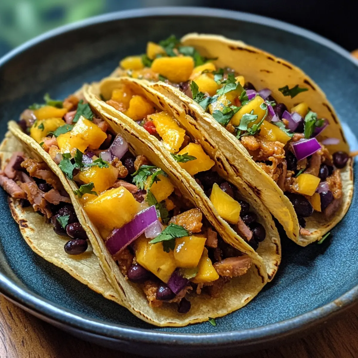 Easy Jackfruit & Black Bean Tacos with Juicy Mango Salsa Burst