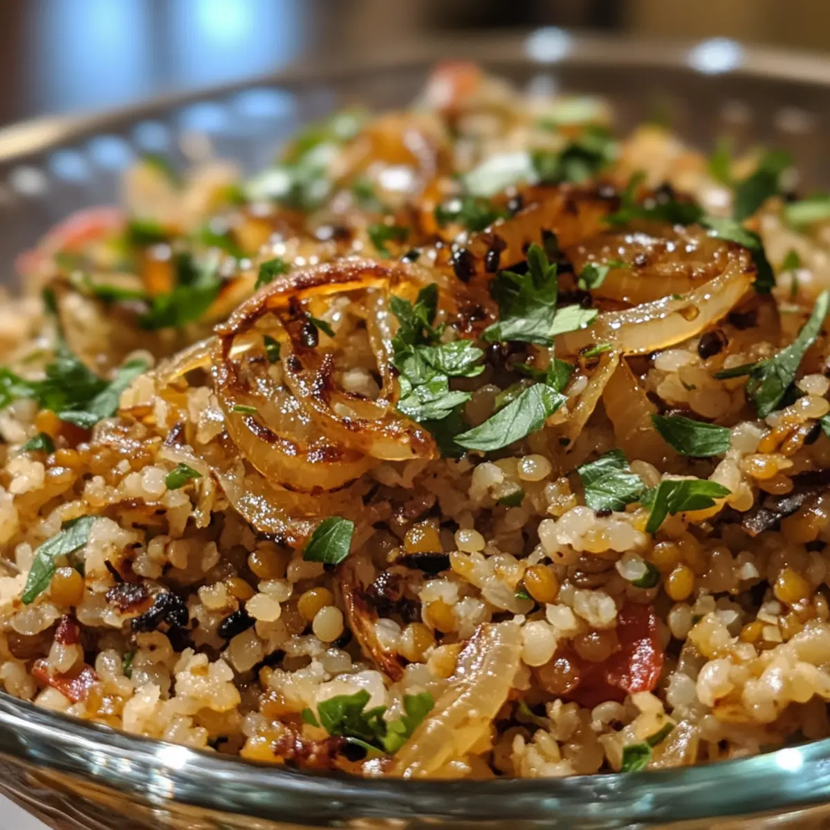 Comforting simplicity: This recipe combines pantry staples for an easy yet impressive dish. Rich, layered flavors: The sweet caramelized onions perfectly complement the earthy lentils and nutty bulgur. Versatile meal: Serve as a hearty main or vibrant side that pairs beautifully with many cuisines. Quick to prepare: Ready in under an hour, ideal for busy weeknights. Crowd-pleaser: Its warm, satisfying taste appeals to both home cooks and seasoned chefs alike.
