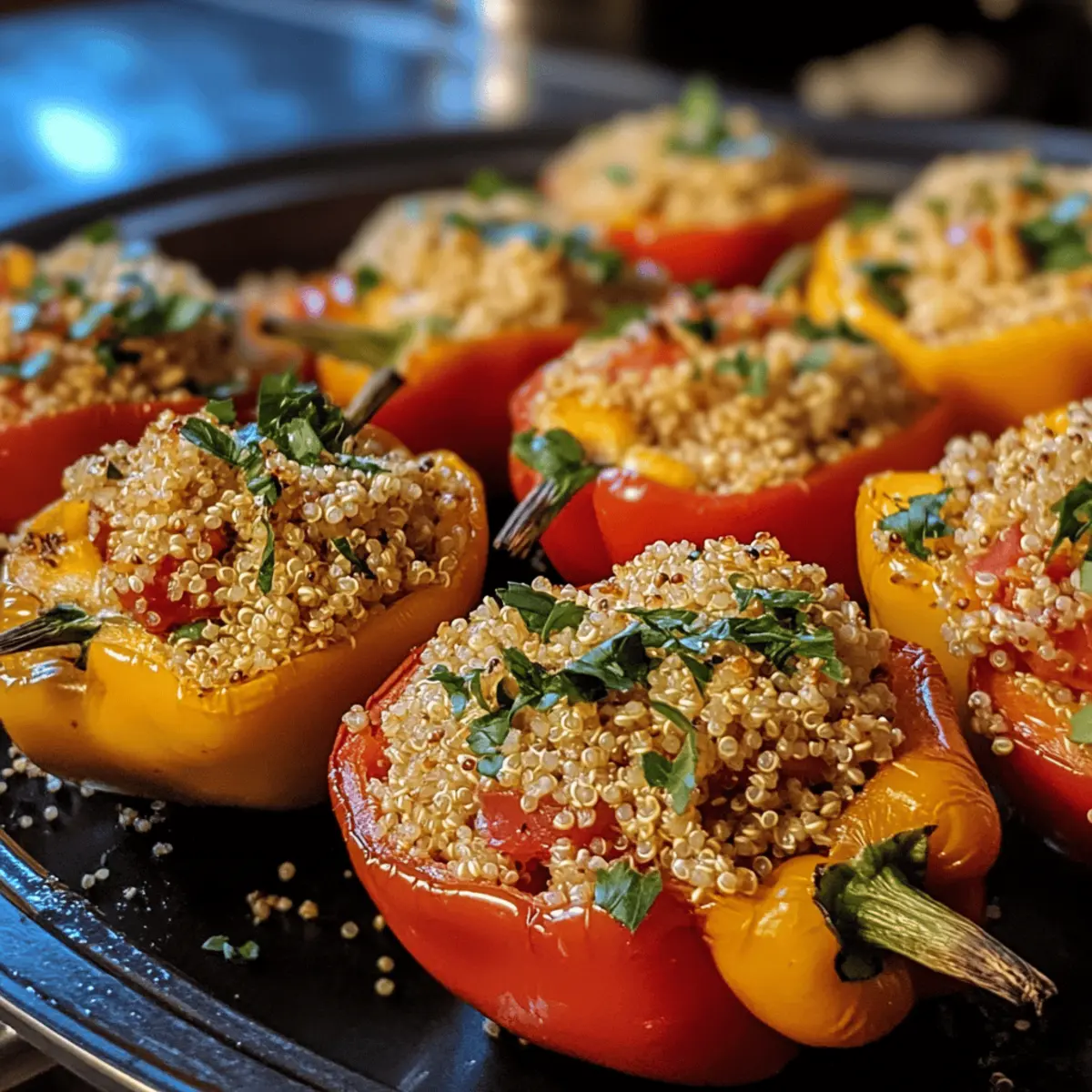Very common! Rinsing quinoa thoroughly before cooking removes bitterness and prevents excess starch. Cook quinoa gently in vegetable broth just until fluffy and translucent (about 15 minutes). Avoid overcooking or stirring too much to maintain a light, distinct texture that complements the peppers perfectly.