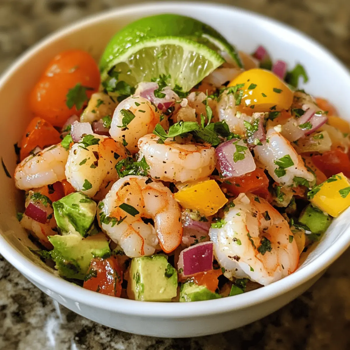 Fresh Flavor Explosion: This salad bursts with zesty lime and crisp vegetables that awaken your taste buds. Effortless Preparation: Minimal ingredients and no cooking make it perfect for quick meals or last-minute guests. Healthy & Light: Packed with protein and fresh produce, it’s a guilt-free way to enjoy vibrant flavors. Versatile Dish: Serve it as a refreshing appetizer, light lunch, or party snack everyone will love. Crowd-Pleasing Texture: Juicy shrimp meet crunchy veggies for a delightful bite every time.