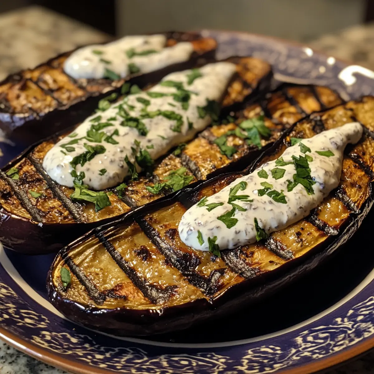 Easy Smoky Grilled Eggplant with Creamy Garlic Yogurt Sauce