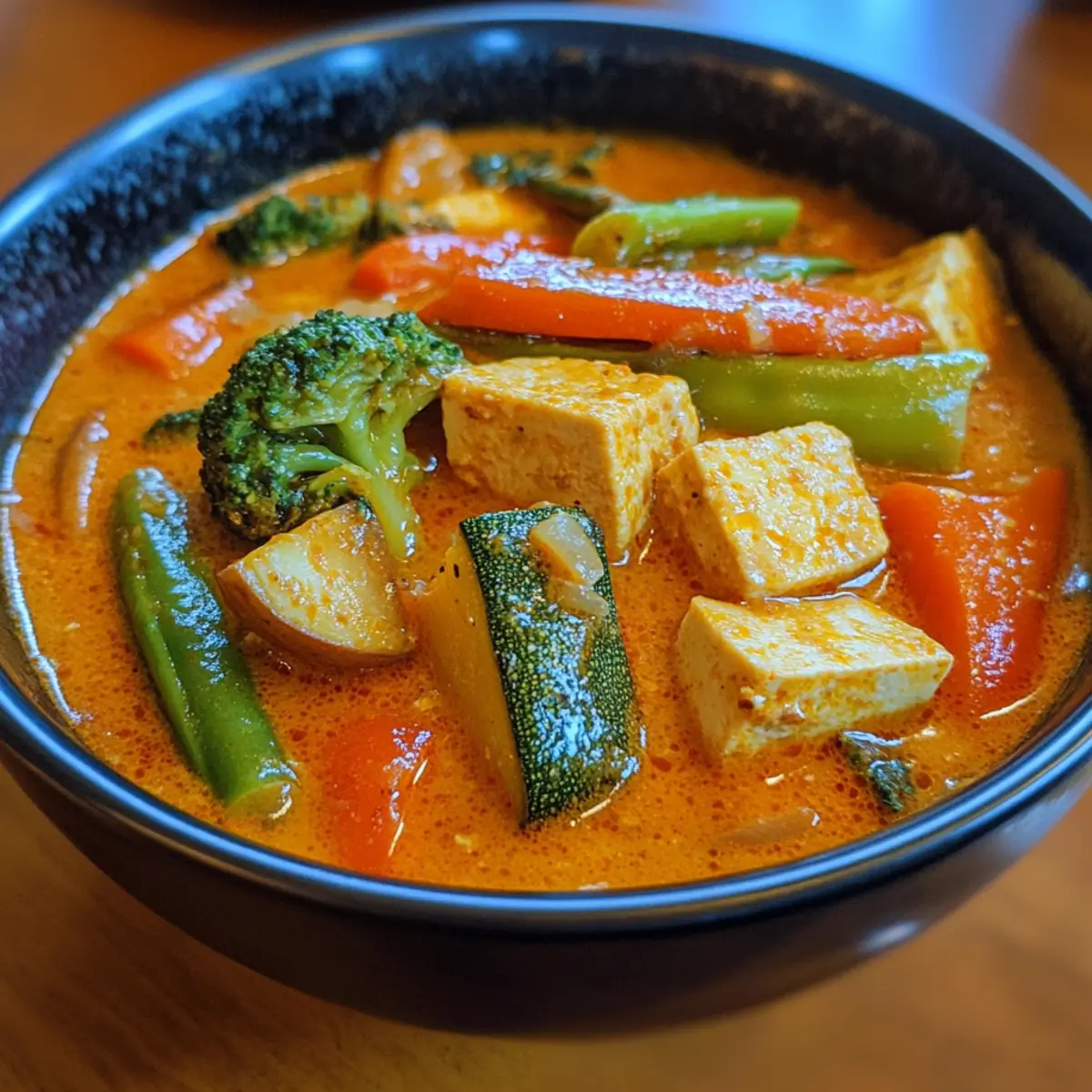 - Simmer gently: Stir vegetables and tofu into the curry base, cover, and simmer on low for 5 minutes until veggies are tender-crisp but still hold a bit of bite.