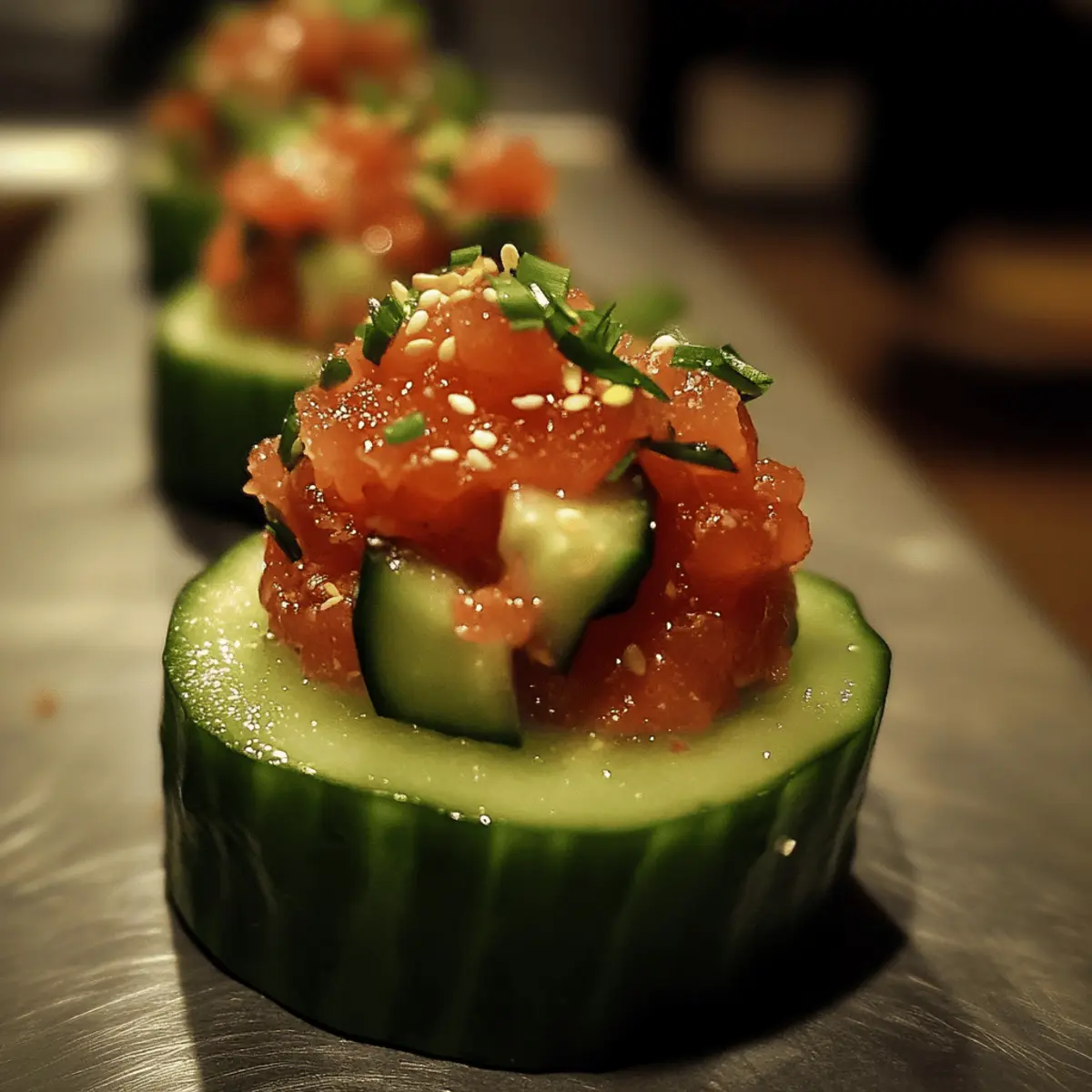 - Assemble Just Before Serving: Prepare components ahead but combine them last minute to keep cucumbers crisp and tartare fresh for a vibrant presentation.