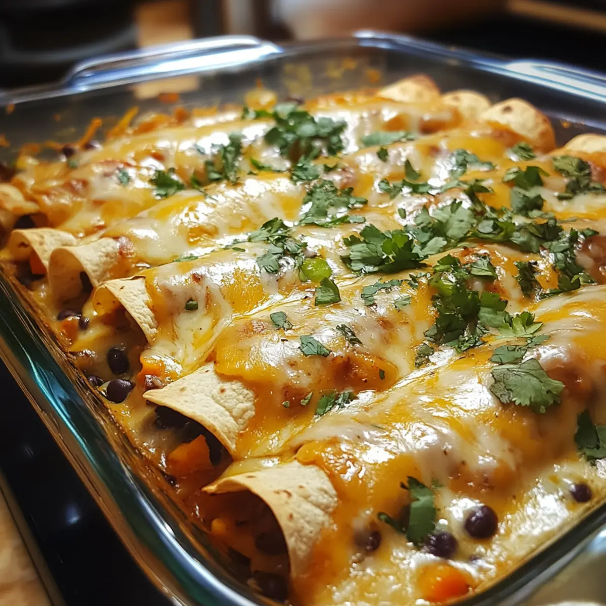 - Sauce & Cheese: Pour remaining enchilada sauce evenly over the rolled tortillas, ensuring every corner is moist; sprinkle shredded cheese generously for a gooey, golden-brown finish.