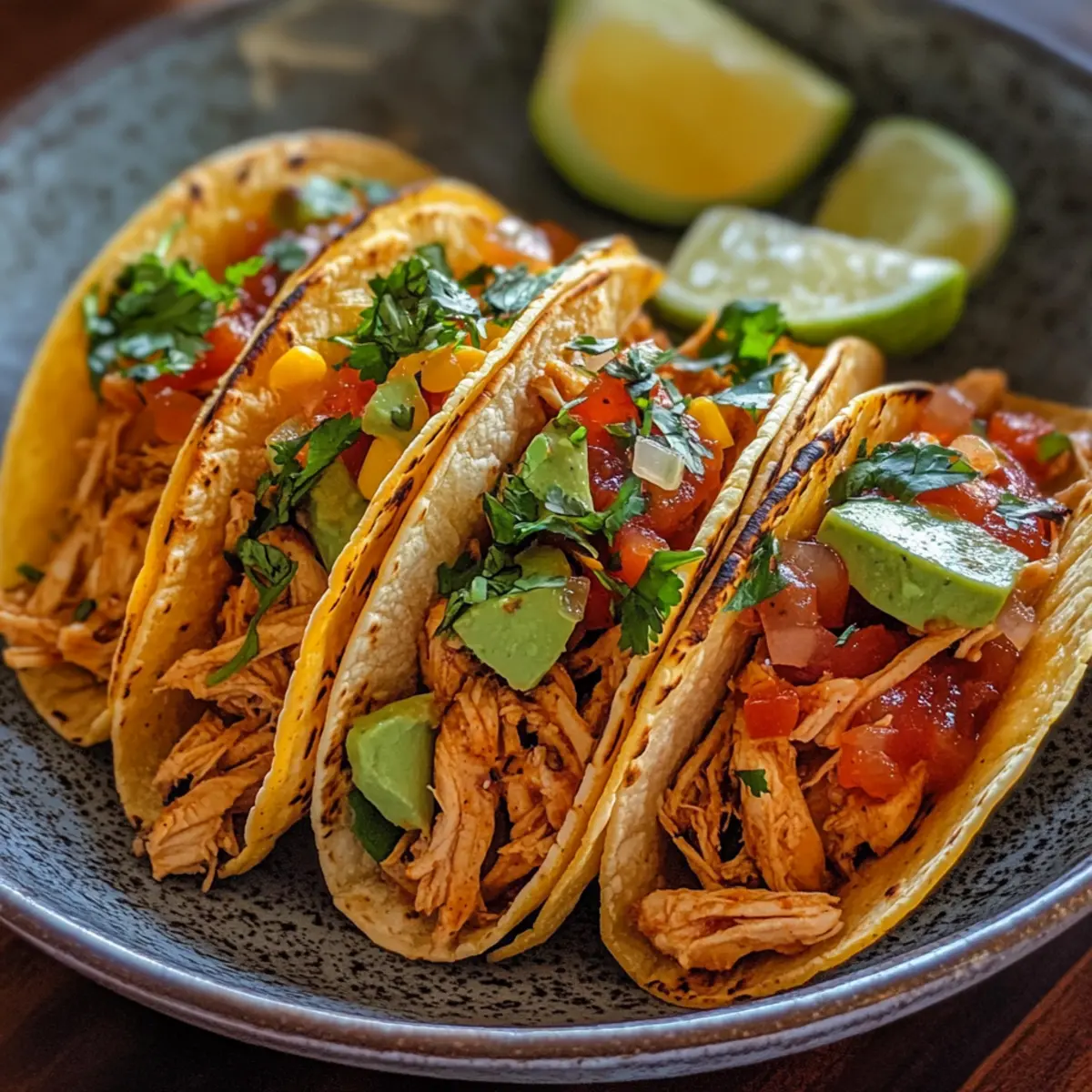 - Assemble: Spoon generous portions of the hot, shredded chicken into each tortilla. Top with diced onion, fresh cilantro, sliced avocado, and a squeeze of bright lime juice.