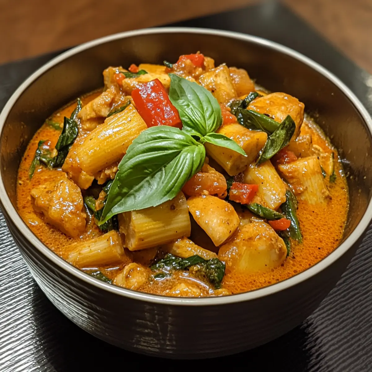 Flavor Explosion: This curry balances creamy coconut milk with fiery red curry paste for an irresistible taste. Crunchy texture: Bamboo shoots add a satisfying bite that keeps every spoonful exciting. Fresh herbal lift: Basil leaves brighten and perfectly mellow the spices. Effortless cooking: Ready in under 30 minutes, ideal for busy weeknights. Authentic flair: Experience genuine Thai flavors without a flight. Crowd-pleaser: Perfectly spicy yet approachable for all palates.