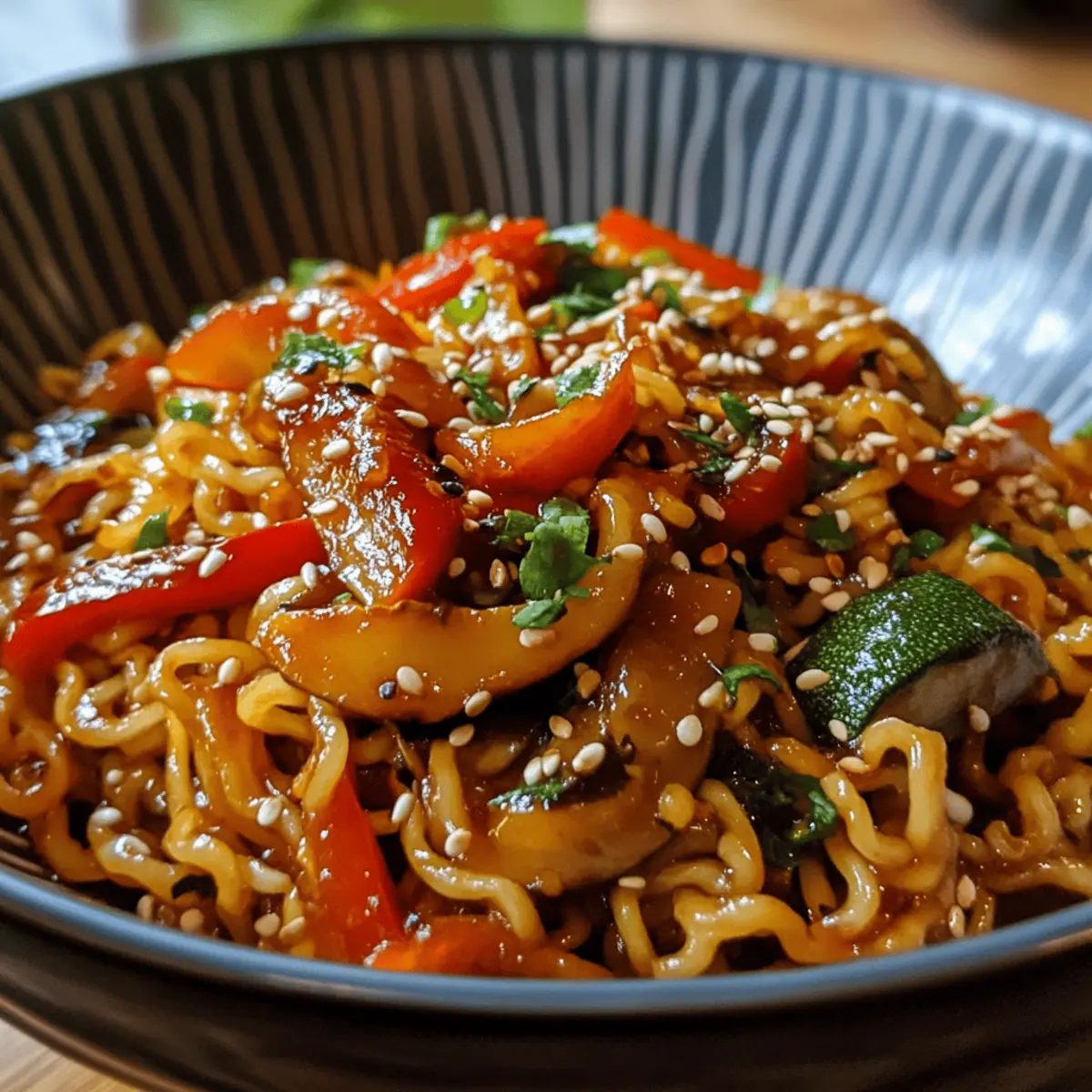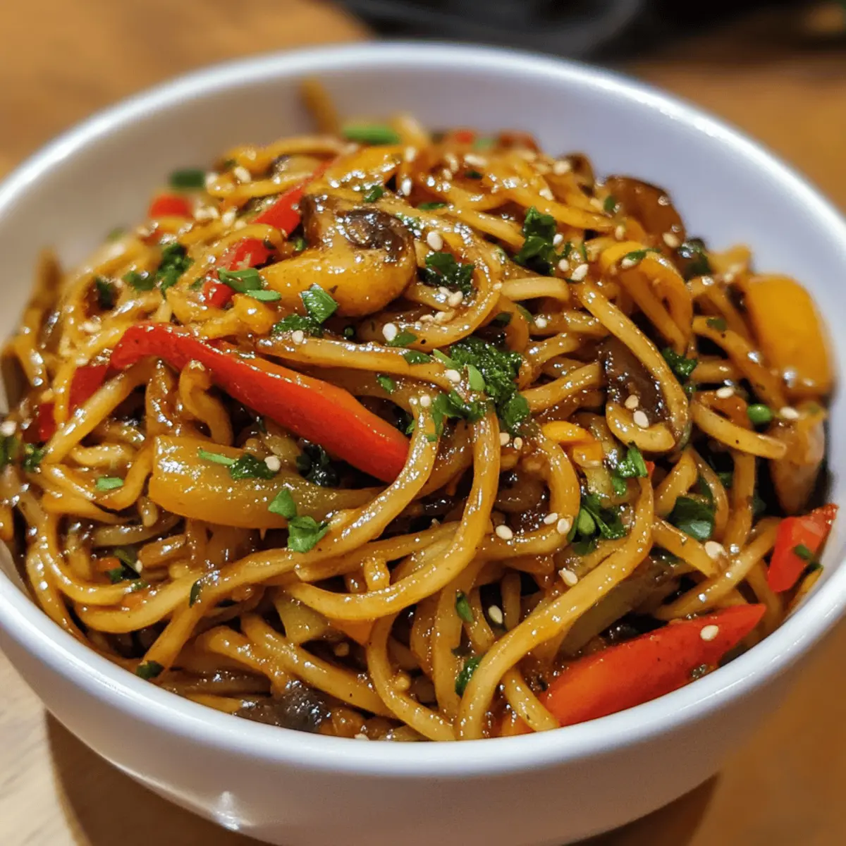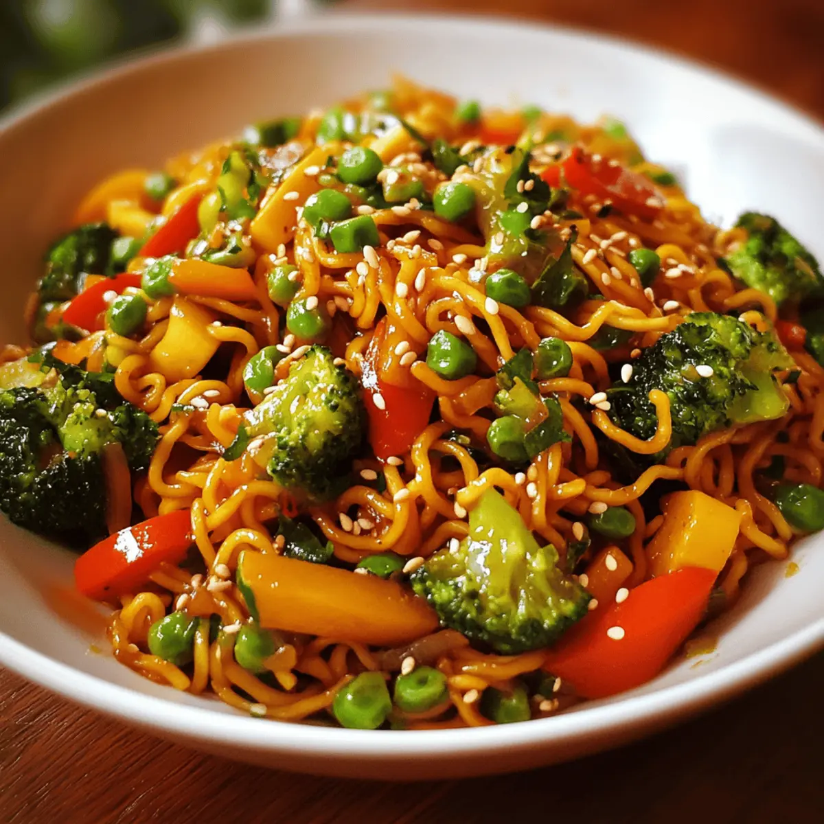 Veggie Stir-Fried Noodles are perfect for meal prep enthusiasts looking to save time during busy weeknights! You can soak the rice noodles and chop all your vegetables up to 24 hours in advance, storing them separately in airtight containers in the refrigerator to maintain their freshness and crunch. The sauce can also be prepared ahead of time; just combine the soy sauce, sesame oil, minced garlic, and sugar, then store it in a small jar for up to 3 days. When you’re ready to serve, simply sauté the veggies and noodles, add the prepped sauce, and stir-fry until everything is heated through and coated in that delicious blend. Enjoy restaurant-quality Veggie Stir-Fried Noodles with minimal effort!