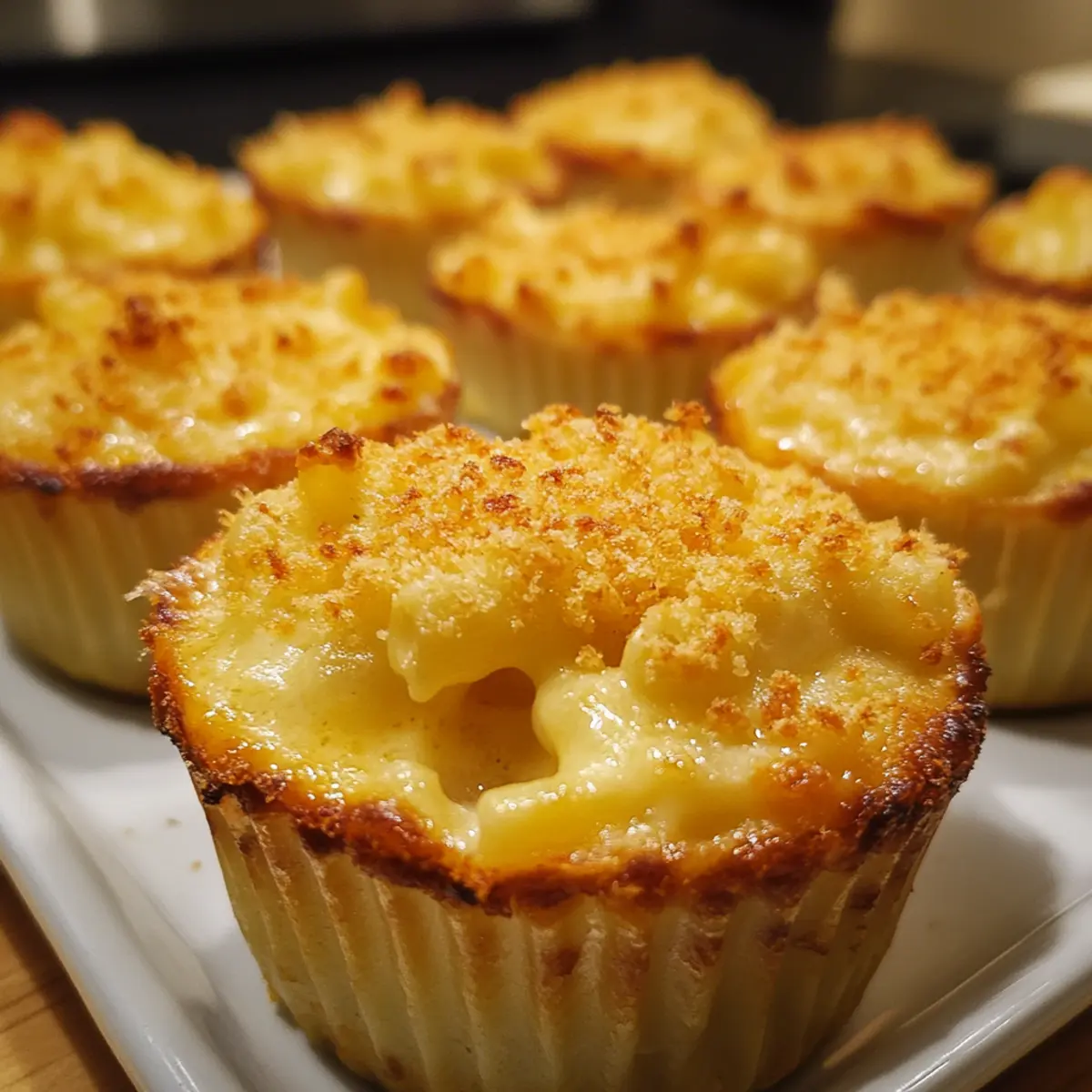 For the Topping: - Assemble cups: Divide mac and cheese among muffin cups, pressing down lightly. Top with a mix of panko, grated Parmesan, and a pinch of paprika.