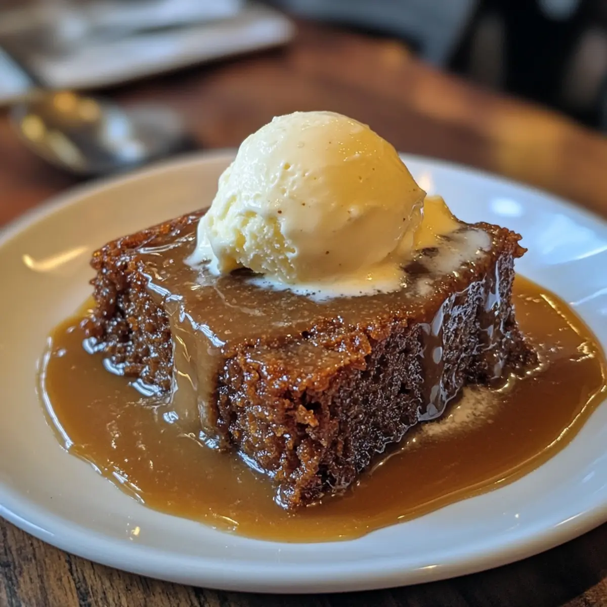 - Serve pudding: Slice or spoon the warm pudding into bowls, drizzle generously with hot toffee sauce, then top each serving with a scoop of vanilla ice cream for creamy contrast.
