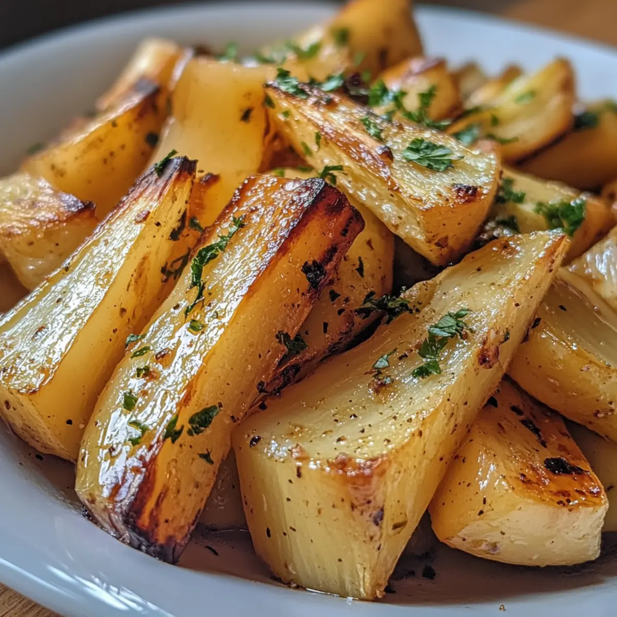 - Roast for 20–25 minutes, flipping once halfway through, until parsnips turn golden brown and caramelized.