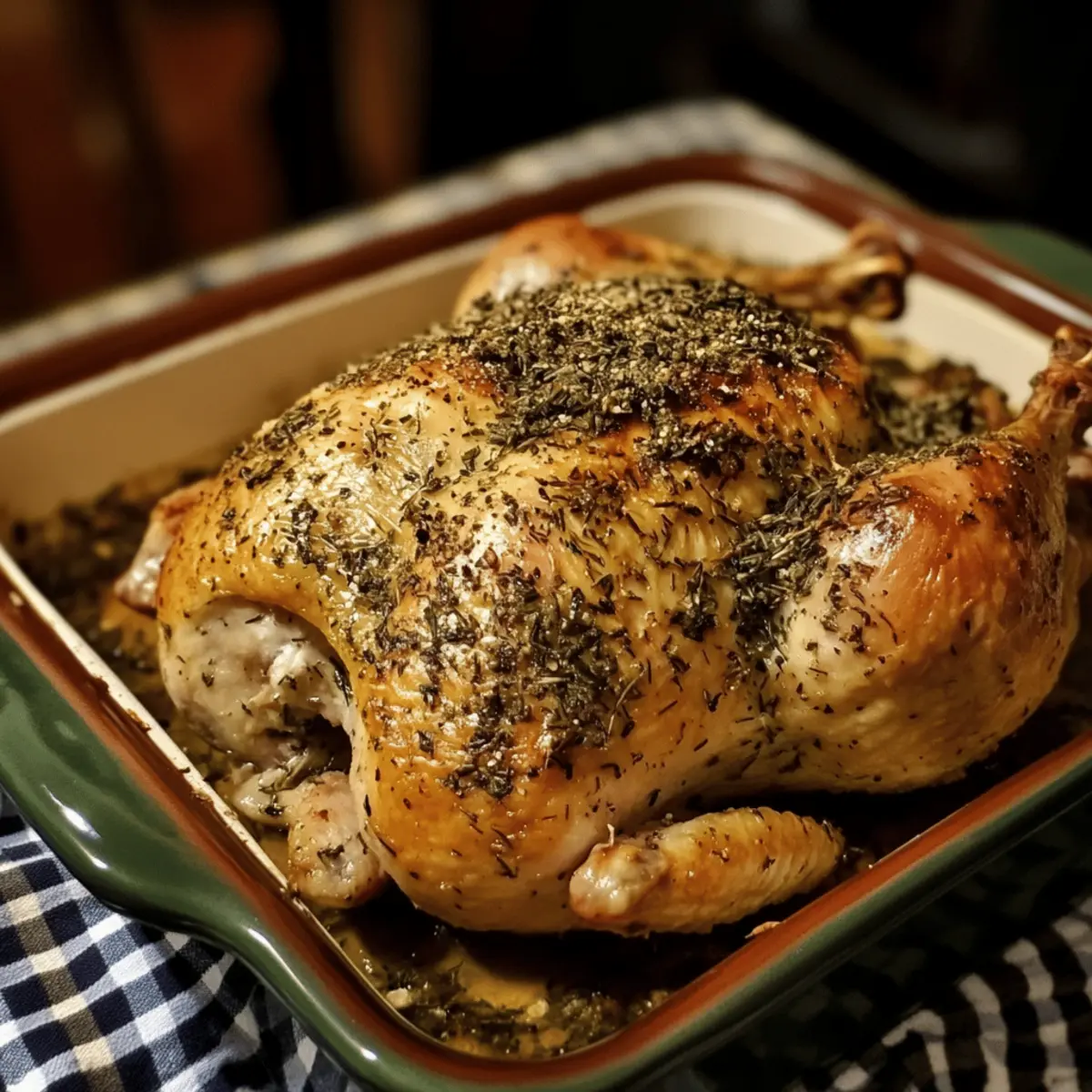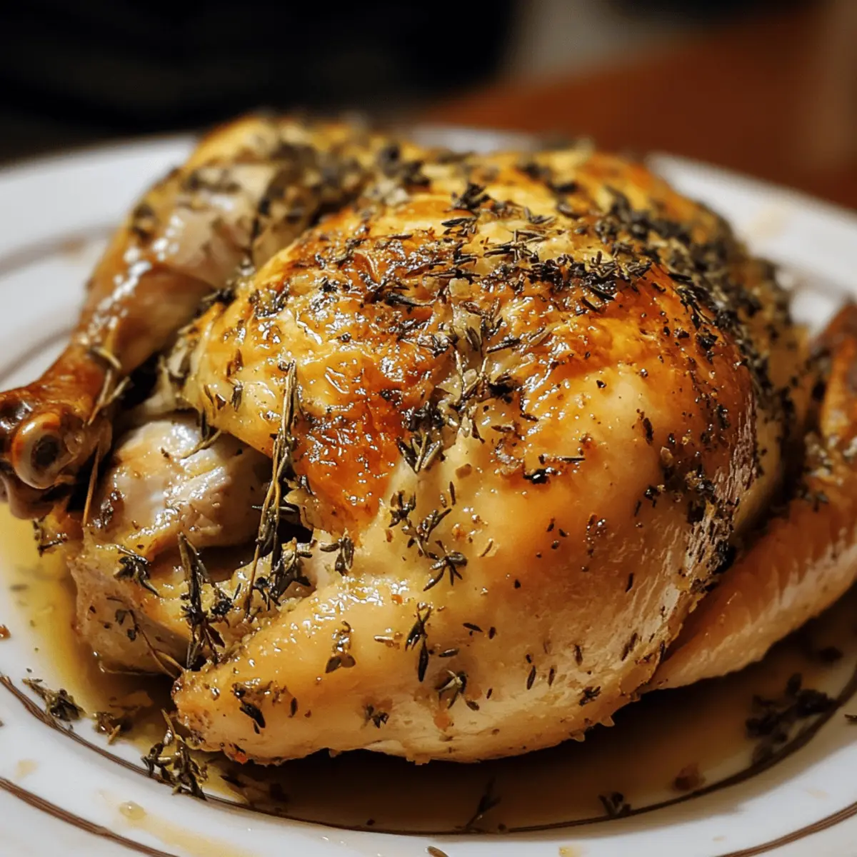 Effortless Elegance: This recipe turns simple herbs and a whole chicken into a gourmet feast without complicated steps. Juicy Tenderness: Slow roasting locks in moisture, delivering succulent, melt-in-your-mouth meat. Crispy Herb Crust: Fresh herbs and seasoning create an irresistible golden crust packed with flavor. Versatile Meal: Perfect for family dinners or special occasions, adaptable with your favorite sides. Time-Saving: Prep ahead and let the oven do the work while you relax. Crowd-Pleaser: Familiar yet refined, it appeals to home cooks and food lovers alike.