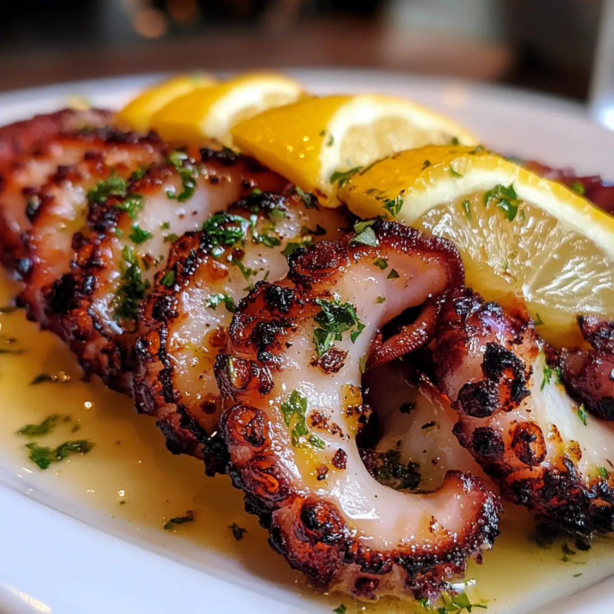 - Rest & Serve: Transfer octopus to a platter, let rest for 5 minutes so juices settle. Garnish with chopped parsley and lemon wedges, serving immediately for best texture.