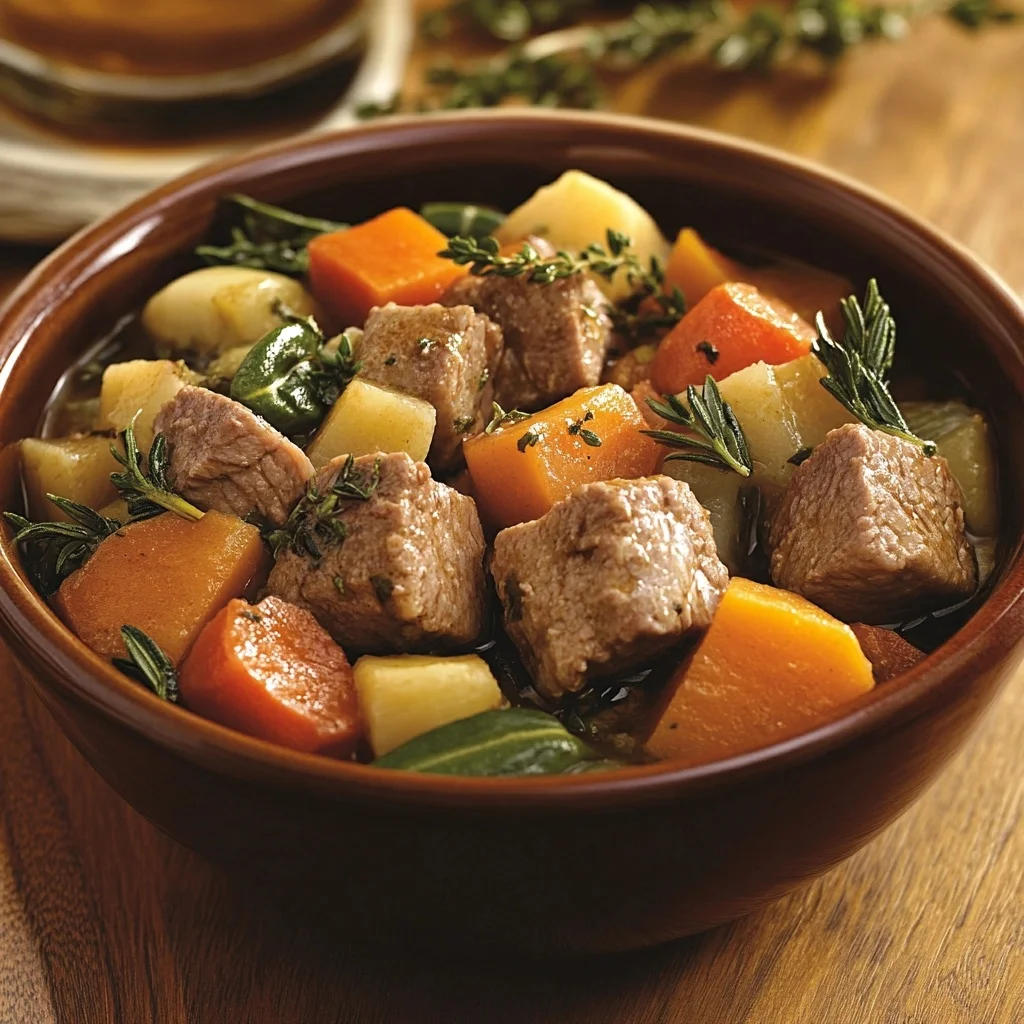 - Add the dried thyme, salt, and pepper. Cover the pot and reduce the heat to low. Allow the stew to simmer gently for 1.5 to 2 hours, or until the lamb is tender and the flavors have melded beautifully.