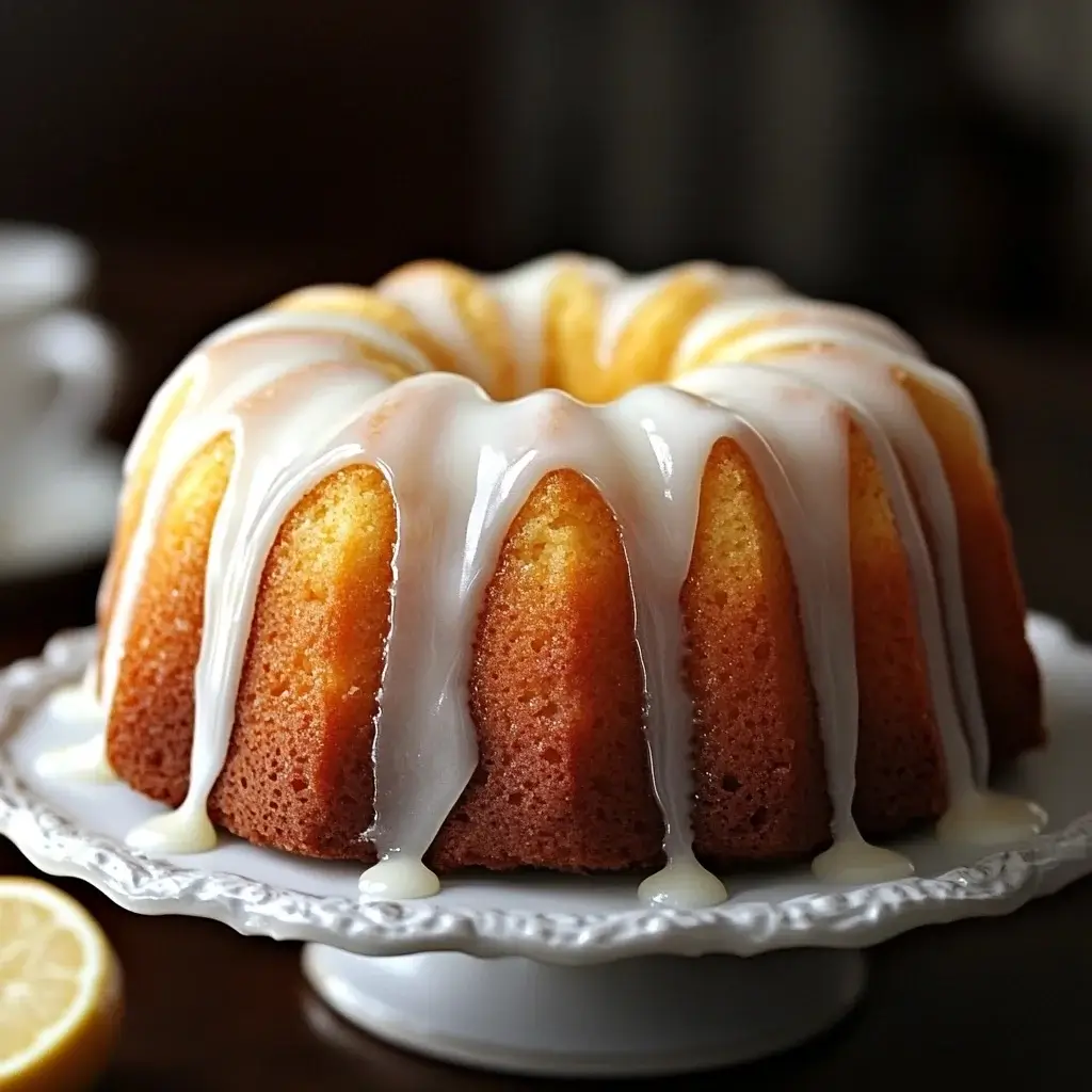 While the cake cools, prepare the glaze by whisking together the powdered sugar and lemon juice until smooth. Drizzle the glaze over the cooled cake, allowing it to cascade down the sides. Garnish with lemon zest if desired, enhancing the cake’s visual appeal and flavor.