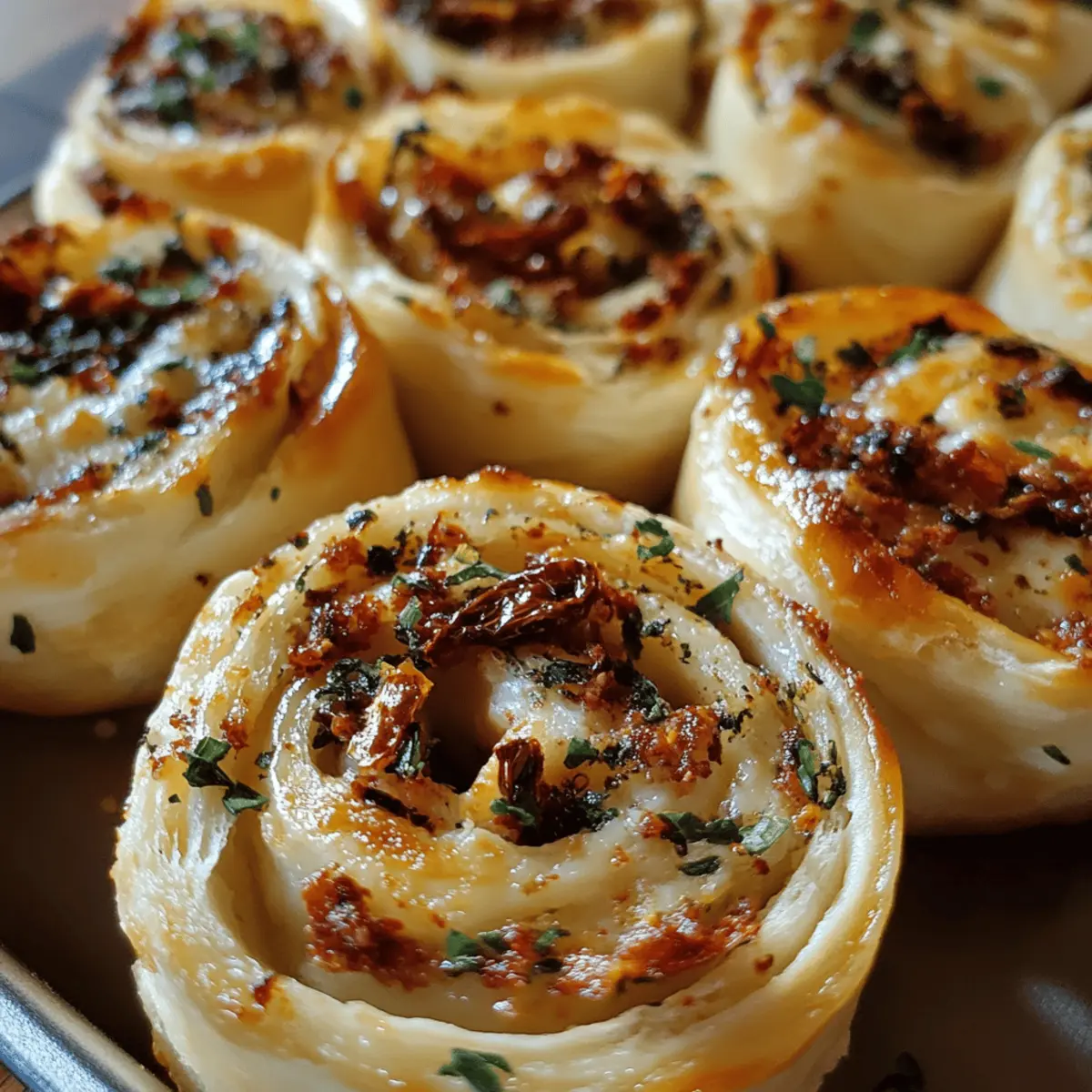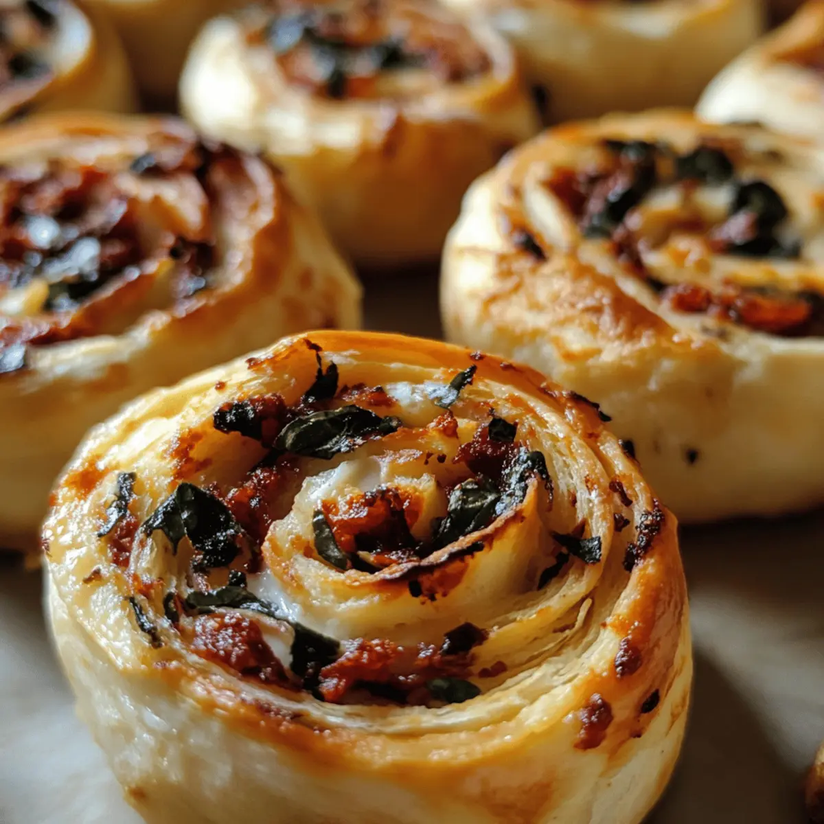 These Goat Cheese and Sun-Dried Tomato Pinwheels are perfect for meal prep enthusiasts! You can prepare the filling up to 24 hours in advance by mixing the goat cheese, sun-dried tomatoes, minced garlic, basil, and black pepper, then store it in an airtight container in the refrigerator. Additionally, you can roll the pinwheels and chill them overnight for easier assembly when you’re ready to bake. Just slice and bake directly from the fridge, adding an extra minute or two to the baking time if they’re cold. This way, you’ll have delightful, hassle-free appetizers that taste just as delicious as if you made them from scratch on the spot, saving you precious time on busy days!