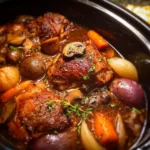 There’s a certain magic that happens when you let a dish simmer away for hours, filling your home with an aroma that promises something truly special. For years, I was intimidated by the thought of making Coq au Vin. The name itself sounded so classically French, so complex, that I assumed it was best left to restaurant chefs. But then I discovered the transformative power of my slow cooker. My first attempt at this Slow Cooker Coq au Vin recipe was a revelation. I prepped the ingredients on a lazy Sunday morning, seared the chicken to a perfect golden-brown, and then entrusted everything to the gentle, steady heat of my crock pot. Hours later, my family was drawn to the kitchen, not by me calling them for dinner, but by the deep, intoxicating aroma of red wine, bacon, and herbs that had taken over the house. The result was nothing short of spectacular. The chicken was so tender it practically melted off the bone, and the sauce was a velvety, wine-infused dream. It tasted like a dish that required days of effort, yet my active time was minimal. It has since become our go-to for cozy family dinners, special occasions, and any time we crave a comforting, elegant meal without the fuss. This recipe proves that you don’t need to be a French chef to create a masterpiece; sometimes, all you need is a little patience and a great slow cooker.