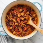 These ingredients come together to form a rich and savory chili that’s packed with protein and fiber, making it a satisfying meal for any occasion.