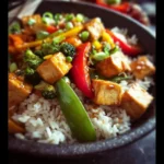 Remove the skillet from the heat. To serve, spoon a generous portion of fluffy rice into bowls and top with the hot tofu and vegetable stir fry. Garnish as desired (see serving suggestions below).