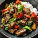 - Serve the Thai Basil Beef Stir Fry hot over cooked jasmine rice.