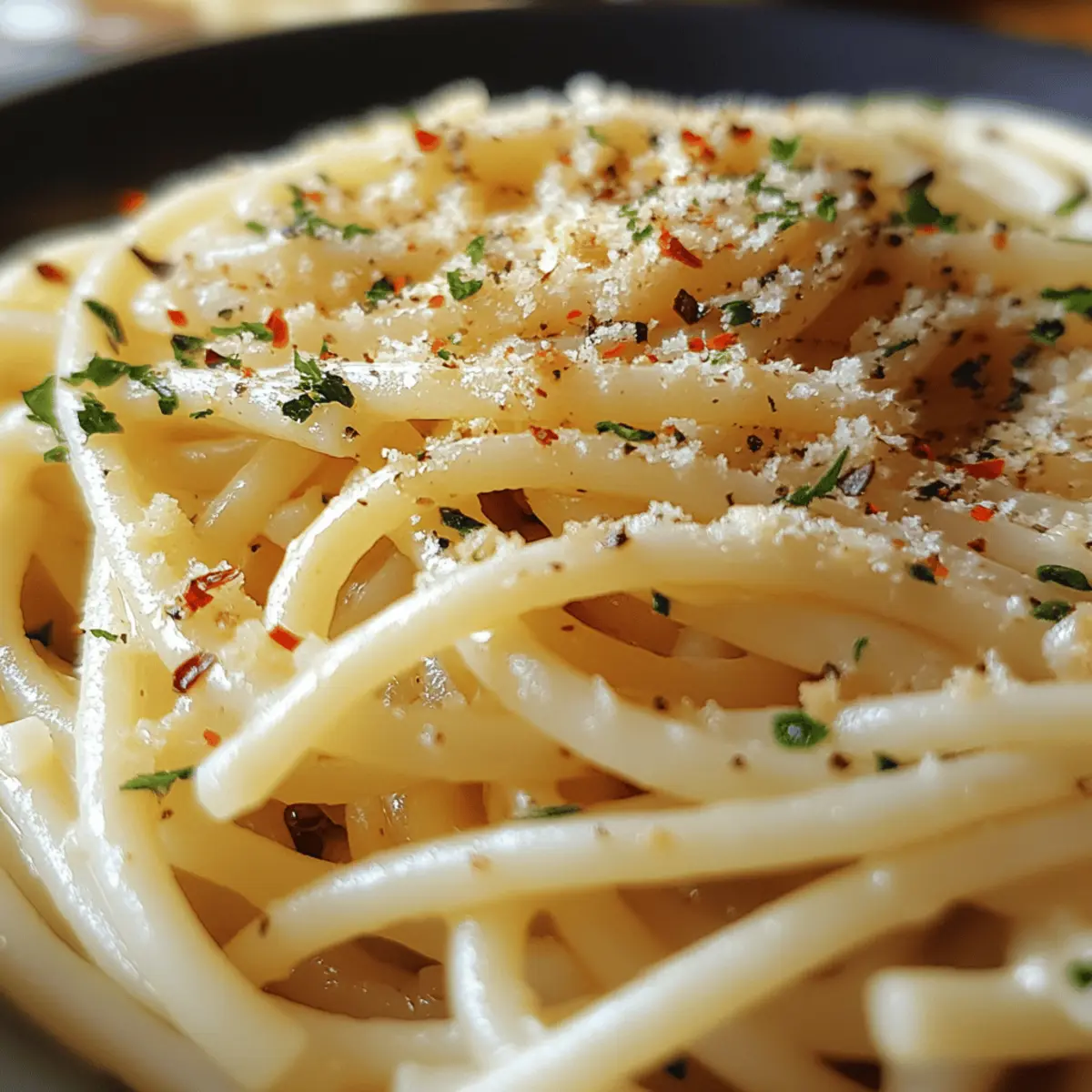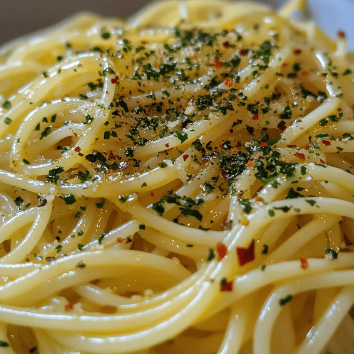 These Spaghetti Aglio e Olio preparations are perfect for meal prep enthusiasts! You can slice the garlic and combine it with the olive oil up to 24 hours in advance, allowing the flavors to meld beautifully. Store the mixture in an airtight container in the refrigerator to maintain freshness. Additionally, the pasta can be cooked and kept in the fridge for up to 3 days. When you’re ready to enjoy your meal, simply reheat the olive oil mixture in a skillet, toss in the reserved pasta with a splash of water to help the sauce emulsify, add freshly chopped parsley and any optional toppings, and serve. This way, you’ll have an effortlessly delicious dinner ready in no time!