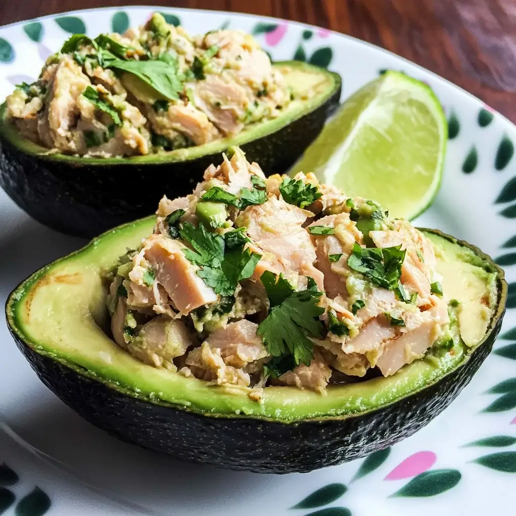 - Stuff the Avocados: Spoon the tuna mixture evenly into the wells of the avocado halves. Fill each avocado half generously with the tuna salad.