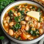Tuscan cuisine, known for its “cucina povera” (peasant cooking) roots, celebrates the art of transforming humble, seasonal ingredients into extraordinarily flavorful dishes. This Tuscan Farro Soup with Beans and Kale is a perfect embodiment of that philosophy. It’s a robust, nutrient-packed soup that features the ancient grain farro, creamy cannellini beans, and hearty kale, all simmered in a savory vegetable broth infused with aromatic herbs. This isn’t just a soup; it’s a bowlful of Italian countryside charm, a testament to the idea that simple food, made with care, can be incredibly sophisticated and deeply nourishing. It’s the kind of meal that satisfies a deep-seated craving for something real, something that connects us to the earth and to a tradition of wholesome eating.