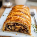 - Duxelles Filling: Mound the cooled mushroom duxelles evenly over the mustard (and optional prosciutto/tofu layer) in the center of the puff pastry rectangle, shaping it into a log or oval shape.